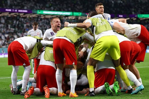 Polandia sukses meraih tiga angka usai mengalahkan Arab Saudi dengan skor 2-0 pada matchday kedua Grup C Piala Dunia 2022, di Stadion Education City, Al Rayyan, Qatar, Sabtu (26/11).
