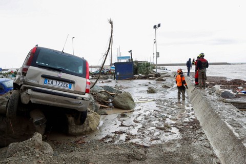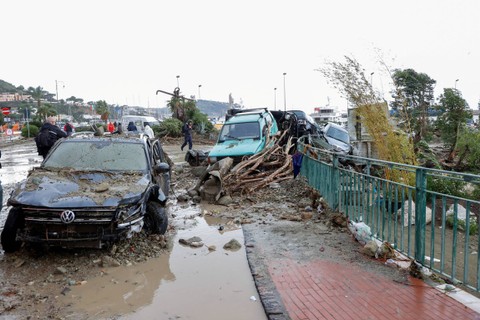 Hujan deras melanda pelabuhan Casamicciola Terme, salah satu dari enam kota kecil di pulau itu, pada Sabtu dini hari, memicu banjir dan merobohkan bangunan.