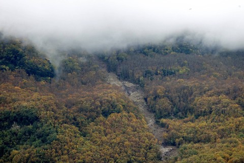 Lumpur dan puing menutupi jalan setelah tanah longsor di pulau liburan Italia Ischia, Italia, Sabtu (26/11/2022). Foto: Ciro De Luca/REUTERS