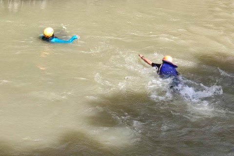 Sejumlah peserta mempraktikkan upaya penyelamatan korban saat mengikuti pelatihan water rescue di Sungai Cisadane, Kabupaten Bogor, Jawa Barat, Sabtu (17/12). Foto: Jamal Ramadhan/kumparanKegiatan tersebut diikuti sebanyak 20 peserta yang terdiri dari jurnalis berbagai media dan blogger. Foto: Jamal Ramadhan/kumparanDompet Dhuafa menggelar pelatihan dasar water rescue dan vertical rescue selama dua hari bertema Jurnalis Siaga Bencana. Foto: Jamal Ramadhan/kumparan Kegiatan ini sebagai upaya siap siaga terhadap bencana khususnya di Indonesia. Foto: Jamal Ramadhan/kumparanSelain water rescue, pada hari terakhir pelatihan, peserta juga mempraktikkan mengendalikan perahu karet dan mencoba mengarungi jeram di Sungai Cisadane. Foto: Jamal Ramadhan/kumparanFoto: Jamal Ramadhan/kumparanFoto: Jamal Ramadhan/kumparan