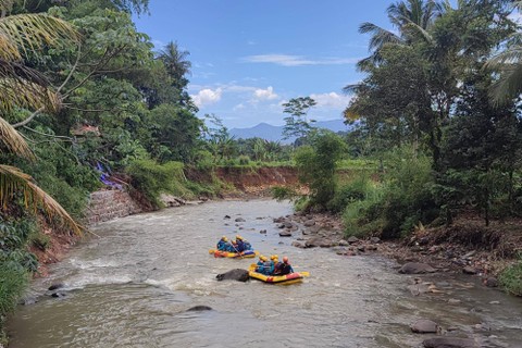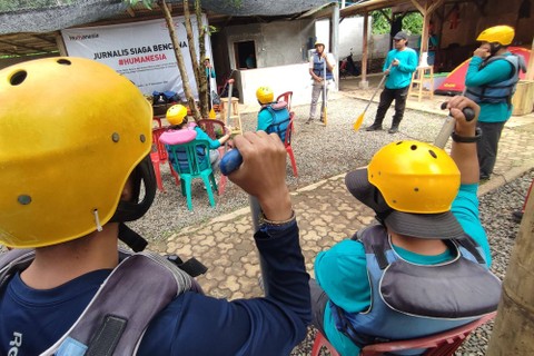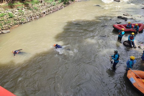 Selain water rescue, pada hari terakhir pelatihan, peserta juga mempraktikkan mengendalikan perahu karet dan mencoba mengarungi jeram di Sungai Cisadane.