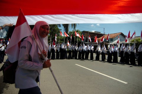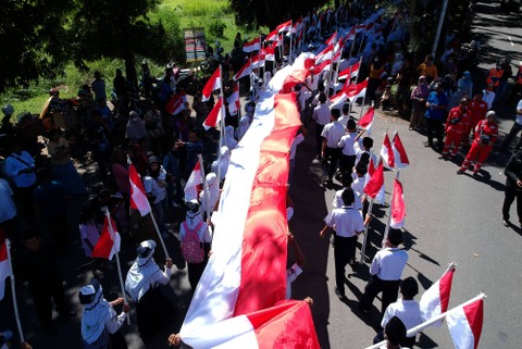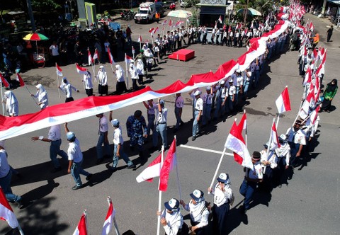 Kirab Kebangsaan Merah Putih itu membentangkan Bendera Merah Putih sepanjang 1.001 meter.