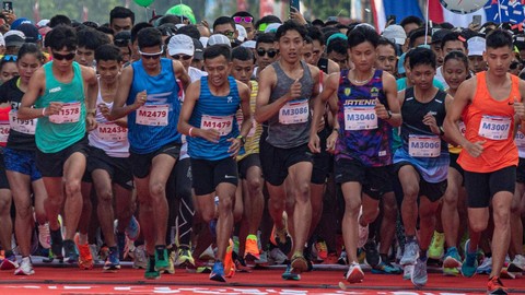 Sejumlah pelari memacu kecepatan mereka dari garis start saat mengikuti ajang lari Semarang 10K di Semarang, Jawa Tengah, Minggu (18/12). Foto: Aji Styawan/Antara FotoAjang lari berjarak tempuh 10 Kilometer tersebut menghadirkan empat kategori lomba. Foto: Aji Styawan/Antara FotoKategori tersebut yaitu 10K Nasional (putra/putri), 10K Master (putra/putri), 10K Pelajar (putra/putri) dan Kid Dash (putra/putri). Foto: Aji Styawan/Antara FotoAtlet lari nasional Indonesia, Robi Syianturi memacu kecepatannya saat mengikuti ajang lari Semarang 10K kategori nasional di Kawasan Cagar Budaya Nasional Kota Lama Semarang, Jawa Tengah, Minggu (18/12/2022). Foto: Aji Styawan/Antara Foto