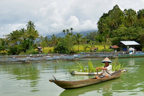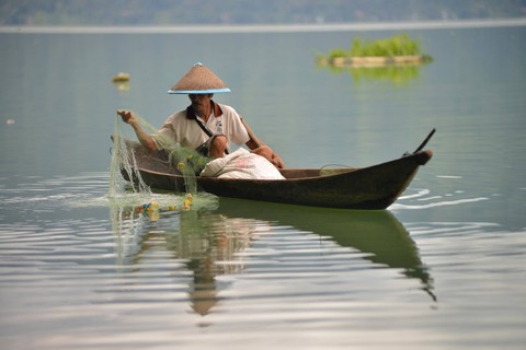 Nelayan melintas di kawasan konservasi Wetland, Danau Maninjau, Jorong Tanjung Sani, Nagari Sungai Batang, Kabupaten Agam, Sumatera Barat, Sabtu (17/12/2022). Foto: Iggoy el Fitra/ANTARA FOTO