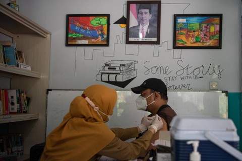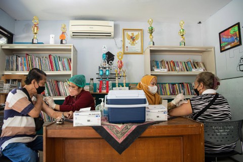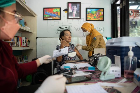 Petugas kesehatan mengukur suhu badan calon penerima vaksin COVID-19 di RPTRA Teratai Tebet Timur, Tebet, Jakarta Selatan, Senin (12/12). Foto: Sigid Kurniawan/ANTARA FOTOPetugas kesehatan menyuntikkan vaksin COVID-19 dosis keempat ke lengan seorang lansia di RPTRA Teratai Tebet Timur, Tebet, Jakarta Selatan, Senin (12/12). Foto: Sigid Kurniawan/ANTARA FOTODua lansia mendaftarkan diri untuk vaksinasi COVID-19 dosis keempat di RPTRA Teratai Tebet Timur, Tebet, Jakarta Selatan, Senin (12/12). Foto: Sigid Kurniawan/ANTARA FOTOSatuan Tugas (Satgas) Penanganan COVID-19 mengatakan bahwa vaksinasi COVID-19 dosis keempat sudah mencapai sebanyak 1.016.903 orang di Indonesia. Foto: Sigid Kurniawan/ANTARA FOTOSatgas Penanganan COVID-19 menyampaikan capaian tersebut per Minggu (11/12). Foto: Sigid Kurniawan/ANTARA FOTO