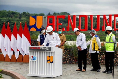 Dalam sambutannya, Jokowi berharap bendungan tersebut bisa meminimalisir banjir di Ibu Kota Jakarta.