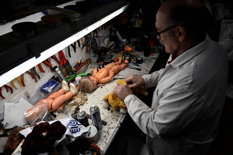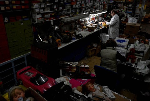 Mengenakan jas lab putih, obeng di tangan, Antonio Martinez Rivas memeriksa mainan rusak di bengkelnya di Madrid. Foto: Oscar Del Pozo/AFPBengkelnya "Hospital del Juguete" (Rumah sakit mainan) akan ditutup setelah 50 tahun mereparasi mainan. Foto: Oscar Del Pozo/AFPSpesialis mainan berusia 70 tahun ini, yang akan pensiun pada 31 Desember, membungkuk di atas "meja operasi" hanya beberapa hari sebelum Natal terakhir bengkelnya. Foto: Oscar Del Pozo/AFP"Sekarang saya yang akan mereka perbaiki," katanya kepada seorang pelanggan dengan suaranya yang serak, menyinggung perjuangannya melawan kanker. Foto: Oscar Del Pozo/AFPDiterangi oleh lampu neon dan dikelilingi oleh peralatan dan suku cadang, meja kerjanya berada di sudut gua Aladdin dengan ribuan rak pengepakan mainan warna-warni yang menjangkau dari lantai ke langit-langit. Foto: Oscar Del Pozo/AFPDahulu, tempat reparasi mainan ini merupakan toko kecil mainan buatan tangan yang dibuka oleh ayahnya pada tahun 1945. Foto: Oscar Del Pozo/AFPToko itu beralih fungsi setelah masuknya mainan plastik secara massal pada tahun 1950-an dan 60-an. Foto: Oscar Del Pozo/AFPAntonio Martinez Rivas bekerja di bengkelnya "Hospital del Juguete" (Rumah sakit mainan), di Madrid pada 20 Desember 2022. Foto: Oscar Del Pozo/AFPAntonio Martinez Rivas bekerja di bengkelnya "Hospital del Juguete" (Rumah sakit mainan), di Madrid pada 20 Desember 2022. Foto: Oscar Del Pozo/AFP