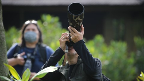 Pengamat burung saat memotret burung di Taman Wisata Alam Mangrove Angke Kapuk Jakarta (15/1). Foto: Aditia Noviansyah/kumparan