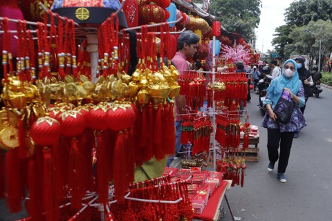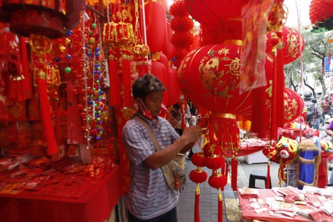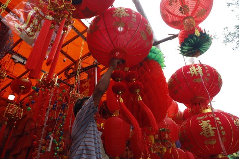 Para Pedagang tersebut menjual beragam kebutuhan Imlek, mulai dari lampion, gantungan Imlek, angpao, hingga pakaian terpajang rapi di sana.