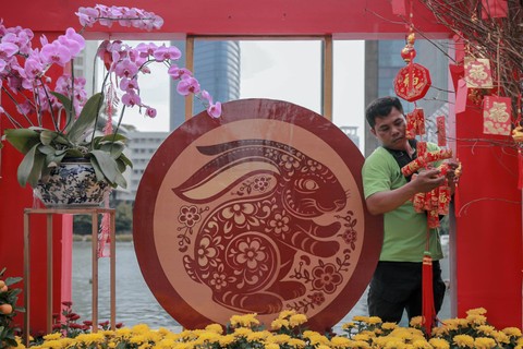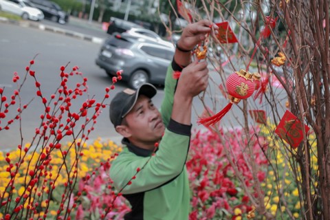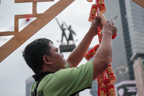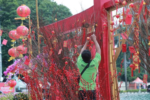 Ornamen tersebut dipasang menjelang Tahun Baru Imlek 2.574 Kongzili yang jatuh pada Minggu, (23/1).