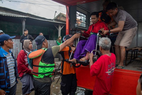 Warga lanjut usia, wanita, anak-anak, karyawan serta pasien rumah sakit yang terisolir banjir menjadi prioritas dalam evakuasi tersebut.