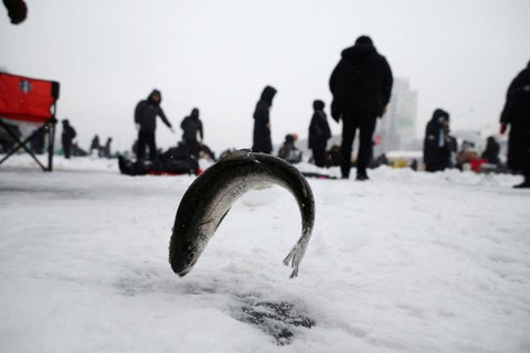 Ribuan orang mengunjungi danau beku saat Festival Es Hwacheon di Korea Selatan, Sabtu (7/1). Foto: Kim Hong-Ji/ReutersMereka memancing ikan trout di sekitar danau yang membeku saat musim dingin. Foto: Kim Hong-Ji/ReutersFestival Es Hwacheon tersebut di gelar di zona demiliterisasi (DMZ) yang memisahkan Korea Utara dan Korea Selatan. Foto: Kim Hong-Ji/ReutersWarga memancing di danau beku saat Festival Es Hwacheon di Korea Selatan, Sabtu (7/1/2023). Foto: Kim Hong-Ji/Reuters