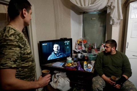 Tentara Ukraina merayakan momen tahun baru di rumah peristirahatan militer di wilayah Donetsk, Ukraina, Sabtu (31/12/2022). Foto: Clodagh Kilcoyne/ReutersMereka merayakan pergantian tahun baru di tengah serangan invasi Rusia yang terus berlanjut. Foto: Clodagh Kilcoyne/ReutersDi momen pergantian tahun para prajurit tersebut merayakan tanpa keluarga. Foto: Clodagh Kilcoyne/ReutersTentara Ukraina merayakan malam tersebut sambil makan bersama dan menyaksikan pidato Malam Tahun Baru Presiden Ukraina Volodymyr Zelenskiy melalui televisi. Foto: Clodagh Kilcoyne/Reuters