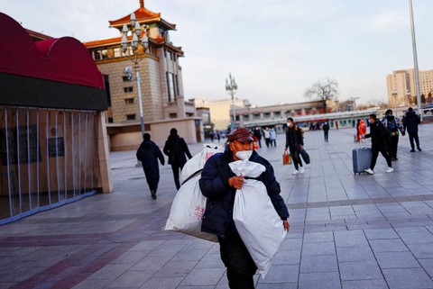 Di tengah gelombang COVID-19 di seluruh negeri, China pada Sabtu (7/1) menandai hari pertama "chun yun", periode 40 hari perjalanan Tahun Baru Imlek. Foto: Tingshu Wang/REUTERSLebih dari dua miliar penumpang diperkirakan akan melakukan perjalanan selama 40 hari ke depan, menurut kementerian transportasi China, dikutip Reuters. Foto: Tingshu Wang/REUTERSLibur Tahun Baru Imlek resmi berlangsung mulai 21 Januari. Foto: Tingshu Wang/REUTERSAda kekhawatiran luas bahwa migrasi besar-besaran pekerja di kota ke kampung halaman mereka akan menyebabkan lonjakan infeksi di kota-kota kecil dan daerah pedesaan yang kurang siap menangani orang sakit. Foto: Tingshu Wang/REUTERSSeorang pria berjalan dengan barang-barangnya di jalan layang ke Stasiun Kereta Api Beijing, menjelang Tahun Baru Imlek, di Beijing, China, Sabtu (7/1/2023). Foto: Tingshu Wang/REUTERSOrang-orang berjalan dengan barang-barangnya di jalan layang ke Stasiun Kereta Api Beijing, menjelang Tahun Baru Imlek, di Beijing, China, Sabtu (7/1/2023). Foto: Tingshu Wang/REUTERS