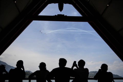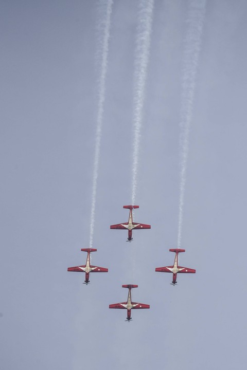 Sejumlah pesawat KT-1 Wong Bee yang tergabung dalam Jupiter Aerobatic Team (JAT) TNI AU bermanuver di atas perairan Danau Toba, Balige, Sumatera Utara, Sabtu (25/2/2023). Foto: M Risyal Hidayat/ANTARA FOTOJAT turut serta memeriahkan gelaran putaran pertama Kejuaraan Dunia Perahu Motor F1 Powerboat (F1H2O) 2023 yang berlangsung pertama kalinya di Indonesia. Foto: M Risyal Hidayat/ANTARA FOTOSejumlah pesawat KT-1 Wong Bee yang tergabung dalam Jupiter Aerobatic Team (JAT) TNI AU bermanuver di atas perairan Danau Toba, Balige, Sumatera Utara, Sabtu (25/2/2023). Foto: M Risyal Hidayat/ANTARA FOTOSejumlah pesawat KT-1 Wong Bee yang tergabung dalam Jupiter Aerobatic Team (JAT) TNI AU bermanuver di atas perairan Danau Toba, Balige, Sumatera Utara, Sabtu (25/2/2023). Foto: M Risyal Hidayat/ANTARA FOTOSejumlah pesawat KT-1 Wong Bee yang tergabung dalam Jupiter Aerobatic Team (JAT) TNI AU bermanuver di atas perairan Danau Toba, Balige, Sumatera Utara, Sabtu (25/2/2023). Foto: M Risyal Hidayat/ANTARA FOTOSejumlah pesawat KT-1 Wong Bee yang tergabung dalam Jupiter Aerobatic Team (JAT) TNI AU bermanuver di atas perairan Danau Toba, Balige, Sumatera Utara, Sabtu (25/2/2023). Foto: M Risyal Hidayat/ANTARA FOTO