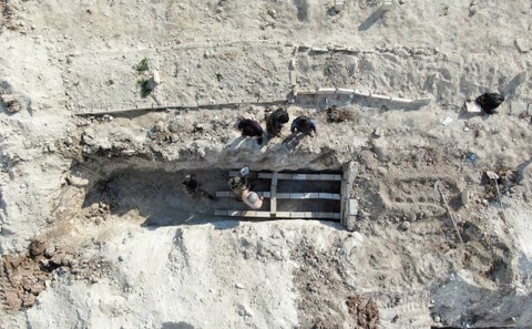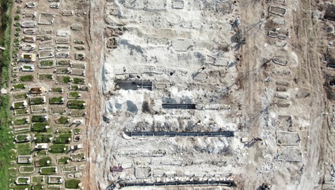 Kuburan massal itu dibangun menggunakan balok semen dan marmer. Seorang relawan mengatakan, mereka telah menguburkan sekitar 50 jenazah setiap hari selama tiga hari terakhir.