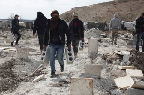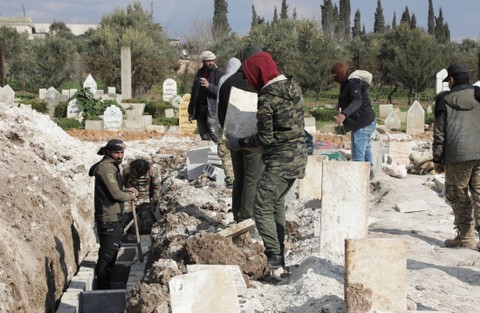 "Kami datang di pagi hari dan mulai menggali, membantu masyarakat. Kami berdoa bagi siapa pun yang datang dan menguburkan mereka," kata Jihed Ahmed Ibrahim, pengungsi Suriah dari Aleppo yang tinggal di sebuah kamp di kota Azaz.