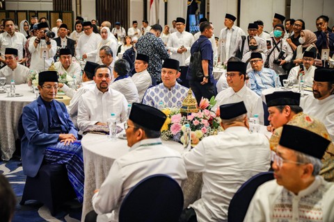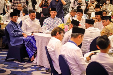 Bacapres, Anies Baswedan, serta sejumlah pimpinan parpol di parlemen, menghadiri buka puasa bersama di hari ketiga Ramadhan di NasDem Tower, Jakarta Pusat, Sabtu (25/3).