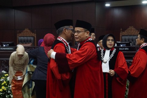 Anwar Usman dan Saldi Isra telah disumpah sebagai Ketua dan Wakil Ketua Mahkamah Konstitusi periode 2023-2028. Pengambilan sumpah dilakukan di Gedung MK, Jakarta, Senin (20/3) pukul 11.00 WIB.