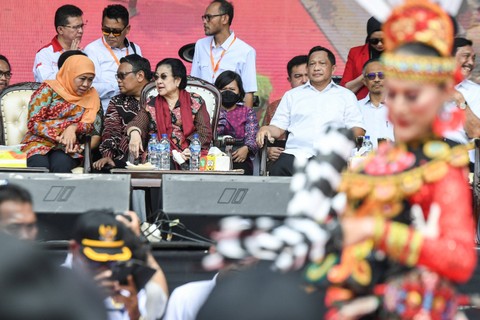 Pantauan kumparan, Mendagri sekaligus Ketua Dewan Pembina APDESI Tito Karnavian, Gubernur Jawa Timur Khofifah, Menko Marves Luhut Binsar Panjaitan, hingga Ketua BPIP Megawati Soekarnoputri menghadiri acara tersebut.