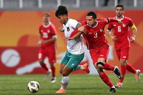 Pemain Timnas U-20 Indonesia Hokky Caraka (kanan) bersama rekan setimnya melakukan selebrasi seusai berhasil mencetak gol ke gawang Timnas U-20 Suriah. Foto: Sigid Kurniawan/ANTARA FOTODalam pertandingan tersebut, Timnas U-20 Indonesia berhasil menang 1-0 atas Timnas U-20 Suriah Foto: Sigid Kurniawan/Antara FotoGol Timnas U-20 Indonesia dicetak oleh Hokky Caraka di menit ke-34. Foto: Sigid Kurniawan/Antara FotoPemain Timnas U-20 Indonesia Dony Tri Pamungkas (bawah) tersungkur seusai berebut bola dengan pemain Timnas U-20 Suriah Malek Janeer Foto: Sigid Kurniawan/Antara Foto