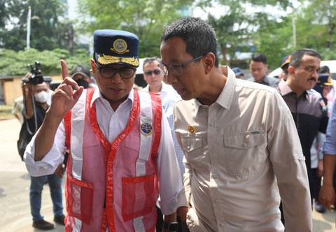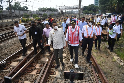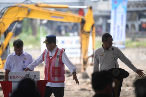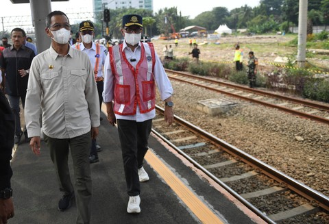 Menteri Perhubungan Budi Karya Sumadi bersama Pj Gubernur DKI Jakarta Heru Budi Hartono menghadiri groundbreaking perluasan Stasiun Tanah Abang di Jakarta, Minggu (30/4). Foto: Akbar Nugroho Gumay/ANTARA FOTOKementerian Perhubungan bersama dengan Pemprov DKI Jakarta akan mengembangkan Stasiun Tanah Abang akan menjadi stasiun sentral guna mendukung mobilitas masyarakat serta akan menjadi ikon baru transportasi di Jakarta. Foto: Akbar Nugroho Gumay/ANTARA FOTOStasiun Tanah Abang yang baru itu rencananya akan dibangun di atas lahan seluas 4 hektare milik Kementerian Perhubungan. Foto: Akbar Nugroho Gumay/ANTARA FOTOFoto: Akbar Nugroho Gumay/ANTARA FOTOFoto: Akbar Nugroho Gumay/ANTARA FOTO