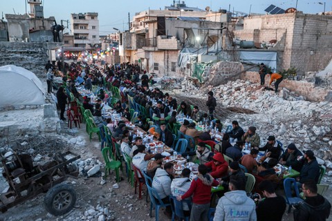 Foto: Korban Gempa Bumi di Kota Aleppo Mendapat Sajian Buka Puasa Bersama
