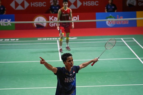 Kemenangan ini membikin Anthony Ginting menjadi satu-satunya wakil 'Merah Putih' di final Indonesia Open 2023.