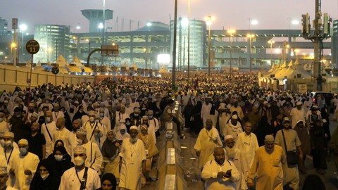Jamaah haji berjalan usai melempar jamrah hari kedua di Jamarat, Mina, Arab Saudi, Kamis (29/6/2023). Foto: ANTARA FOTO/Wahyu Putro AJutaan jamaah haji memadati kawasan Jamarat untuk melaksanakan lempar jamrah Ula, Wustha, Aqabah. Foto: ANTARA FOTO/Wahyu Putro APelaksanaan lempar jamrah dilakukan setelah melaksanakan wukuf. Foto: ANTARA FOTO/Wahyu Putro AJamaah lalu diberangkatkan ke Muzdalifah untuk mengambil batu kerikil sebanyak 49 hingga 70 butir untuk lempar jamrah bagi jamaah yang akan mengambil nafar awal di Mina, sedangkan jamaah haji yang akan nafar tsani mengambil batu untuk lempar jamrah sebanyak 70 butir. Foto: ANTARA FOTO/Wahyu Putro A