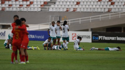 Timnas Indonesia gagal meraih juara ketiga usai kalah melawan Myanmar di Piala AFF U-19 Wanita 2023. Foto: Nova Wahyudi/Antara FotoLaga yang digelar di Stadion Jakabaring, Palembang, pada Sabtu (15/7) berakhir via adu penalti 4-2 usai laga imbang 1-1 selama 90 menit. Foto: Nova Wahyudi/Antara FotoSebelumnya Indonesia tidak masuk ke laga puncak. Foto: Nova Wahyudi/Antara FotoPasukan Rudy Eka menerima kekalahannya dari Thailand dengan skor telak 7-1 pada laga semifinal yang digelar di Stadion Jakabaring, Palembang, Sumatera Selatan. Foto: Nova Wahyudi/Antara FotoPesepak bola Timnas Wanita Indonesia U-19 Claudia Alexandra Scheunemann (kiri) berebut bola dengan pesepak bola Timnas Myanmar May Thet Mon Myint pada pertandingan perebutan juara ketiga AFF U-19 Women Championship 2023 di Stadion Gelora Sriwijaya Jakabaring (GSJ), Jakabaring Sport City (JSC) Palembang, Sumatera Selatan, Sabtu (15/7/2023). Foto: Nova Wahyudi/Antara FotoPesepak bola Timnas Wanita Indonesia U-19 menangis setelah kalah dari Timnas Myanmar pada pertandingan perebutan juara ketiga AFF U-19 Women Championship 2023 di Stadion Gelora Sriwijaya Jakabaring (GSJ), Jakabaring Sport City (JSC) Palembang, Sumatera Selatan, Sabtu (15/7/2023). Foto: Nova Wahyudi/Antara Foto