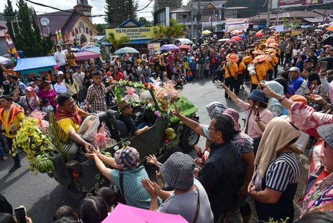 Festival yang sudah diselenggarakan semenjak tahun 80-an ini kembali diadakan pada 1-3 Juli 2022 di Berastagi. Foto: Fransisco Carolio/ANTARA FOTOSemarak festival bisa anda nikmati, mulai dari Parade, Perlombaan, Atraksi, Live Performer Artis Lokal hingga Nasional, dan juga pameran UMKM. Foto: Fransisco Carolio/ANTARA FOTOBupati Karo Cory Sriwaty Sebayang menyebutkan pelaksanaan festival bunga dan buah di Taman Mejuah-Juah Berastagi, Kabupaten Karo, Sumatera Utara, menjadi momentum kebangkitan pariwisata di daerah ini. Foto: Fransisco Carolio/ANTARA FOTOSebab, kata Cory antusiasme para pengunjung untuk melihat festival bunga dan buah ini cukup tinggi setiap tahunnya. Foto: Fransisco Carolio/ANTARA FOTO