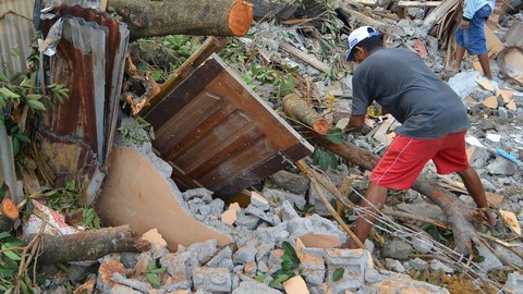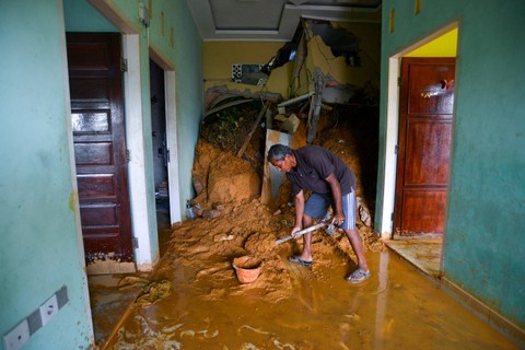 Sejumlah warga membersihkan material longsor yang masuk ke rumah di Mato Aia, Padang, Sumatera Barat, Sabtu (15/7). Foto: Iggoy el Fitra/Antara FotoBerdasarkan data Badan Penanggulangan Bencana Daerah (BPBD) Padang, dari 13 titik longsor pada Jumat (14/7) sebanyak sembilan bangunan terdampak longsor. Foto: Iggoy el Fitra/Antara FotoTiga di antaranya mengalami rusak berat. Foto: Iggoy el Fitra/Antara FotoWarga melihat kondisi rumah yang hancur akibat longsor di Mato Aia, Padang, Sumatera Barat, Sabtu (15/7/2023). Foto: Iggoy el Fitra/Antara Foto