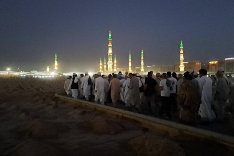 Peziarah mengunjungi makam Baqi di Madinah, Arab Saudi, Sabtu (15/7/2023). Foto: Wahyu Putro A/Antara Foto