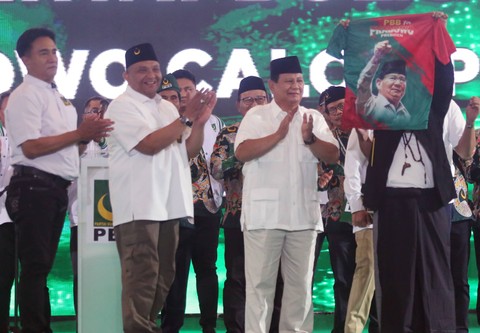 Partai Bulan Bintang (PBB) menggelar puncak Harlah ke-25 di ICE BSD, Tangerang, Minggu (30/7). Dalam acara itu, PBB mendeklarasikan Ketua Umum Partai Gerindra, Prabowo Subianto, sebagai capres yang akan diusung dalam kontestasi Pilpres 2024.