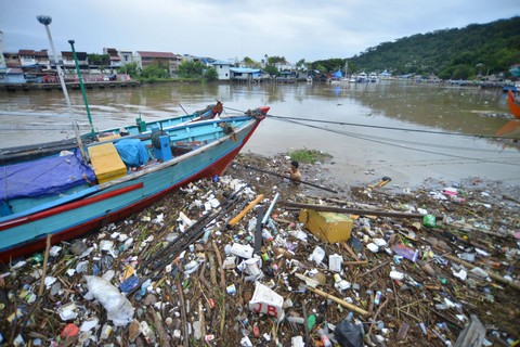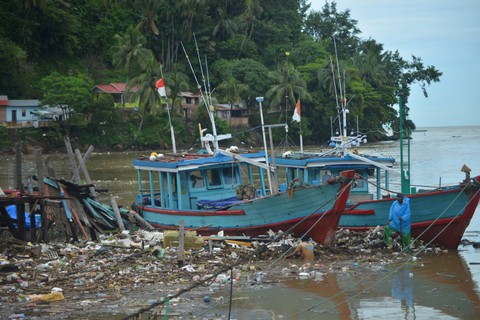 Nelayan menyingkirkan sampah yang menghambat kapalnya dan merusak dermaga di Sungai Batang Arau, Padang, Sumatera Barat, Jumat (14/7). Foto: Iggoy el Fitra/ANTARA FOTOMaterial sampah yang berisi potongan kayu dan sampah plastik tersebut terbawa arus sungai akibat intensitas hujan tinggi sejak Kamis (13/7). Foto: Iggoy el Fitra/ANTARA FOTOAkibatnya, sampah tersebut memenuhi muara dan pantai. Foto: Iggoy el Fitra/ANTARA FOTOFoto: Iggoy el Fitra/ANTARA FOTO