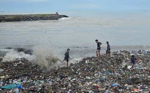 Material sampah yang berisi potongan kayu dan sampah plastik tersebut terbawa arus sungai akibat intensitas hujan tinggi sejak Kamis (13/7). Akibatnya, sampah tersebut memenuhi muara dan pantai.