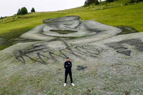 Seniman Swiss-Prancis, Saype, mengatakan lukisan karyanya itu dapat dilihat dari puncak gunung dan padang rumput di dekatnya.