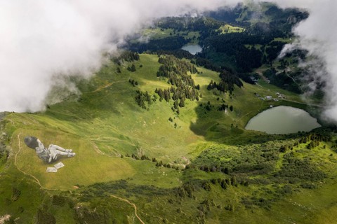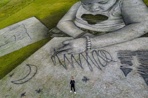 Di lereng gunung di desa Villars-sur-Ollon, Swiss, seorang seniman menggunakan kapur dan arang untuk melukis dua lukisan raksasa anak-anak yang membuat sketsa bagaimana mereka melihat dunia luas di sekitar mereka. Foto: Denis Balibouse/REUTERSLukisan yang dilukis langsung di atas rerumputan ini memperlihatkan seorang anak laki-laki dan perempuan menelusuri garis berlekuk-lekuk di atas kertas sketsa menggambarkan gunung, pohon, bintang, dan bulan. Foto: Denis Balibouse/REUTERSSeniman Swiss-Prancis SAYPE mengatakan lukisan karyanya itu dapat dilihat dari puncak gunung dan padang rumput di dekatnya. Foto: Denis Balibouse/REUTERSLukisan berukuran sekitar 3.000 meter persegidi lereng gunung ini dapat bertahan berhari-hari tergantung pada kondisi cuaca. Foto: Denis Balibouse/REUTERSLukisan seni tanah yang menggambarkan gambar anak-anak oleh seniman Swiss-Prancis SAYPE dipajang di Chamossiare di Villars-sur-Ollon, Swiss, Kamis (13/7/2023). Foto: Denis Balibouse/REUTERS