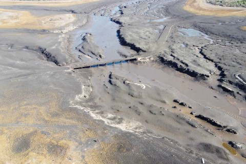 Sebuah jembatan yang muncul dari bawah waduk Paso Severino yang mengering di tengah kekeringan parah di Florida, Uruguay, pada 28 Juni 2023. Foto: Eitan Abramovic/AFPWaduk yang biasanya memasok air bersih untuk 60 persen penduduk negara itu, mengalami penurunan terbesar dalam kadar air yang pernah tercatat. Foto: Eitan Abramovic/AFPMenurut pihak berwenang, ketinggian air bisa benar-benar habis pada bulan Juli jika tidak turun hujan. Foto: Eitan Abramovic/AFPPemandangan udara menunjukkan area kering waduk Paso Severino di tengah kekeringan parah di Florida, Uruguay, pada Rabu (28/6/2023). Foto: Eitan Abramovic/AFPSeorang warga melihat jembatan yang muncul dari bawah waduk Paso Severino di tengah kekeringan parah di Florida, Uruguay, pada Rabu (28/6/2023). Foto: Eitan Abramovic/AFPPemandangan rendahnya permukaan air di waduk Paso Severino di tengah kekeringan parah di Florida, Uruguay, pada Rabu (28/6/2023). Foto: Eitan Abramovic/AFPPemandangan udara menunjukkan area kering waduk Paso Severino di tengah kekeringan parah di Florida, Uruguay, pada Rabu (28/6/2023). Foto: Eitan Abramovic/AFPPemandangan jembatan yang muncul dari bawah waduk Paso Severino di tengah kekeringan parah di Florida, Uruguay, pada Rabu (28/6/2023). Foto: Eitan Abramovic/AFPPemandangan jembatan yang muncul dari bawah waduk Paso Severino di tengah kekeringan parah di Florida, Uruguay, pada Rabu (28/6/2023). Foto: Eitan Abramovic/AFP