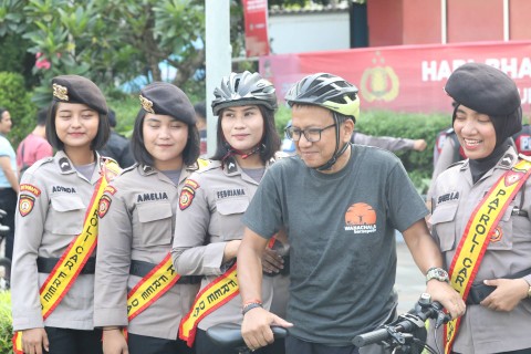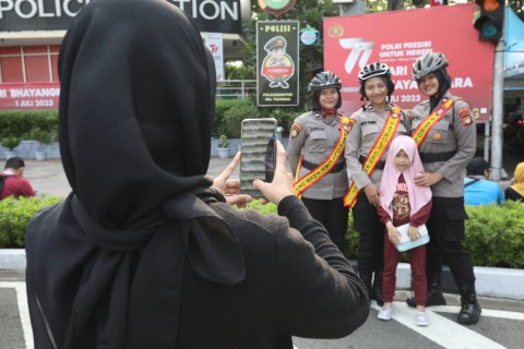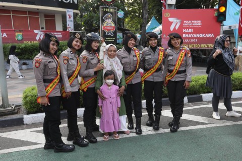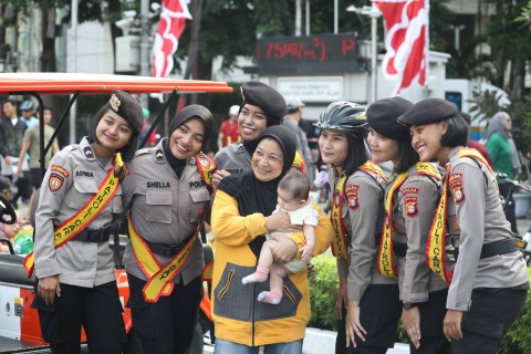 Foto: Warga Antusias Foto Bersama Polwan di CFD Bundaran HI