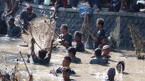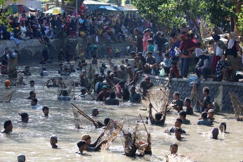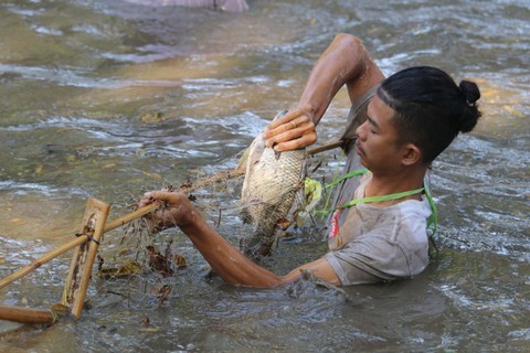 Tradisi menangkap ikan itu dilakukan hanya pada bulan Suro penanggalan Jawa.