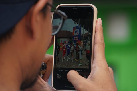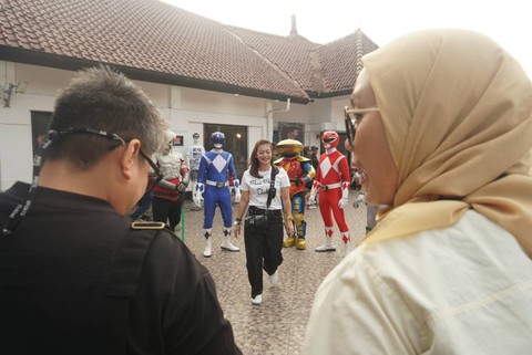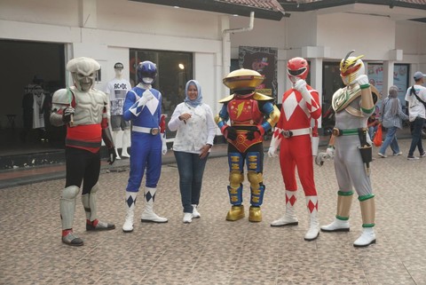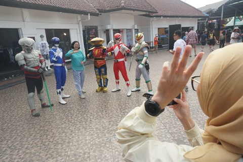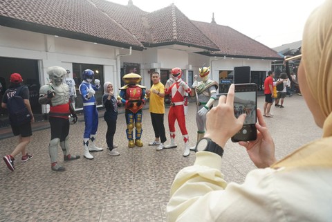 Pengunjung melakukan foto bersama karakter Power Rangers di The 90's Festival, Kemayoran, Jakarta, Minggu (13/8). Foto: Iqbal Firdaus/kumparan