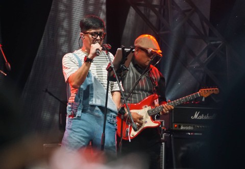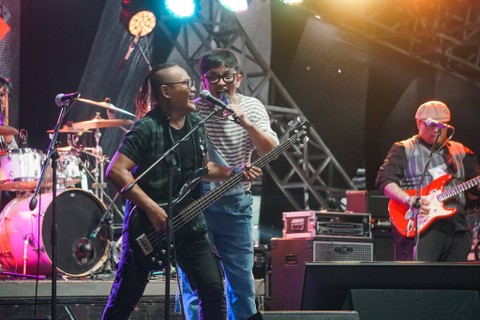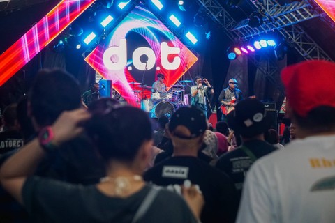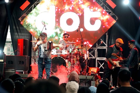 DOT Band tampil menghibur penonton di The 90's Festival, di JIExpo Kemayoran, Jakarta, Sabtu (12/8).