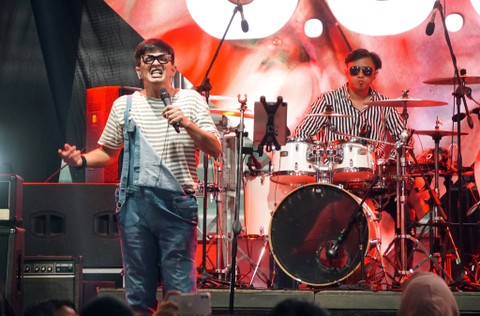 Vokalis DOT Band, Eza Yayang, tampil di panggung The 90s Festival, Kemayoran, Jakarta, Sabtu (12/8/2023). Foto: Iqbal Firdaus/kumparan