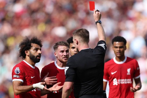 Liverpool sempat mendapatkan petaka pada menit ke-58. Gelandang Liverpool, Alexis MacAllister, harus mendapatkan kartu merah usai melakukan pelanggaran kepada Ryan Christie.