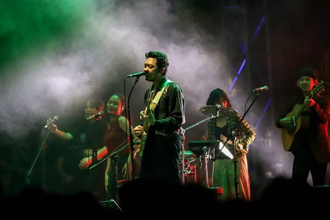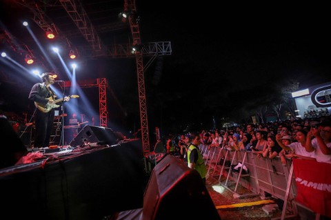 Penampilan Pamungkas turut meramaikan panggung The Sounds Project 2023 di Ecopark Ancol, Jakarta, Sabtu (12/8).