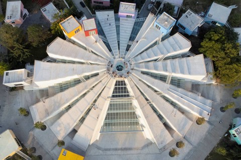 Kini bekas museum tersebut, yang dirancang ulang oleh arsitek Belanda Winy Maas, sedang bersiap untuk menampung ratusan pemuda Albania yang tertarik untuk mengikuti pelatihan teknologi komputer dan coding – bagian dari upaya pemerintah untuk menjalin hubungan yang lebih erat dengan Uni Eropa.