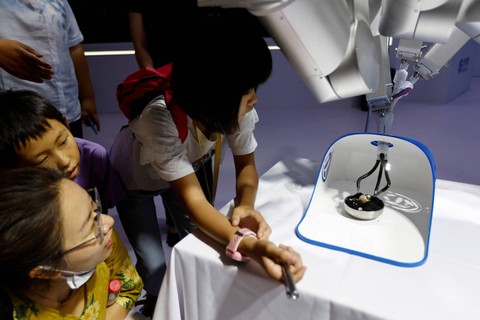 Pengunjung melihat lengan robot humanoid oleh EXRobots di Beijing World Robot Conference (WRC) 2023 di Beijing, China, 17 Agustus 2023. Foto: Tingshu Wang/ReutersPengunjung disuguhi pameran robot humanoid hidup. Foto: Tingshu Wang/ReutersPameran robot tersebut banyak menyuguhkan teknologi baru yang meningkatkan ekspresi dan gestur robot mirip manusia. Foto: Tingshu Wang/ReutersXier, seorang insinyur penelitian dan pengembangan (R&D) di perusahaan robot humanoid EXRobots mengatakan upgrade telah memungkinkan sendi humanoid untuk bergerak lebih alami dan memiliki ekspresi mikro dan gerakan jari yang lebih halus. Foto: Tingshu Wang/ReutersKonferensi tahunan akan diadakan dari 16 hingga 22 Agustus. Foto: Tingshu Wang/Reuters