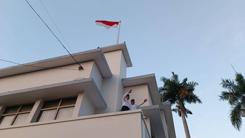Pasangan bakal capres-cawapres Anies Baswedan dan Muhaimin Iskandar atau Cak Imin sempat berdiri di bawah tempat bersejarah perobekan warna biru pada bendera Belanda menjadi Bendera Merah Putih di Hotel Majapahit.