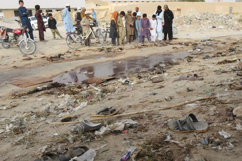 Bom bunuh diri melanda dua masjid di Pakistan pada hari Jumat, menewaskan sedikitnya 57 orang. Foto: REUTERS/StringerBelum ada kelompok yang segera mengaku bertanggung jawab atas serangan tersebut, yang diperkirakan menyebabkan jumlah korban tewas bertambah, dengan banyak orang terluka parah dan lainnya terjebak di bawah reruntuhan. Foto: REUTERS/StringerDalam ledakan pertama, di Mastung di provinsi barat daya Balochistan, pembom meledakkan bahan peledaknya di dekat kendaraan polisi tempat orang-orang berkumpul. Foto: REUTERS/StringerSetidaknya 52 orang tewas, menurut pejabat kesehatan distrik Abdul Rasheed, termasuk anak-anak berusia sembilan hingga 11 tahun. Setidaknya 58 orang terluka. Foto: REUTERS/StringerMeningkatnya serangan militan di provinsi-provinsi barat Pakistan telah membayangi persiapan pemilu dan kampanye publik menjelang pemilu nasional bulan Januari, namun hingga saat ini serangan-serangan tersebut sebagian besar menargetkan pasukan keamanan. Foto: Hospital Mastung/Handout via REUTERS